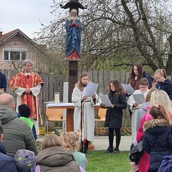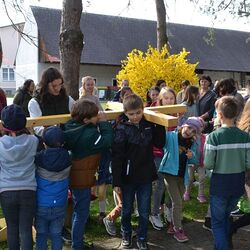 Dieses freudige Geschehen feierten wir am 2. April in großer Gemeinschaft auf unserem Kirchplatz. Diakon Michi Zepf zelebrierte und viele wirkten an der Gestaltung mit: die Musikgruppe, der Kirchenchor, Minis und JS (Passion), die Kindergartenkinder (Lieder), MS-Schülerinnen (Fürbitten) und die LJ (Palmbuschen). Danke allen fürs Kommen, Mitfeiern und Mithelfen!