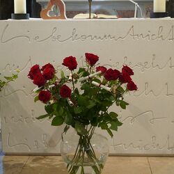 Die Rose als Sinnbild begleitete uns auch durch die ganze Feier. Mit ihrer Schönheit, ihrer Blütenpracht, ihrem Duft, den grünen Blättern, aber auch mit ihren Dornen vereint sie Gegensätze in sich. Sie ist Zeichen der Liebe und kann für unser Zusammenleben stehen.