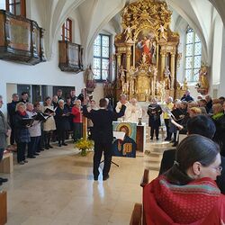 Der heurige Ostermontaggottesdienst, den Vikar Norbert Glaser mit uns feierte, wurde musikalisch vom Gemeinschaftschor der Pfarren Dobl, Premstätten und Wundschuh gestaltet. Unter der Leitung von Stefan Stampler und Magdalena Moser erklang - neben traditionellen Osterliedern - Musik von Felix Mendelssohn Bartholdy (Ordinarium für gemischten Doppelchor a cappella), die unseren Kirchenraum erfüllte und festliche, freudige Stimmung verbreitete.