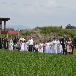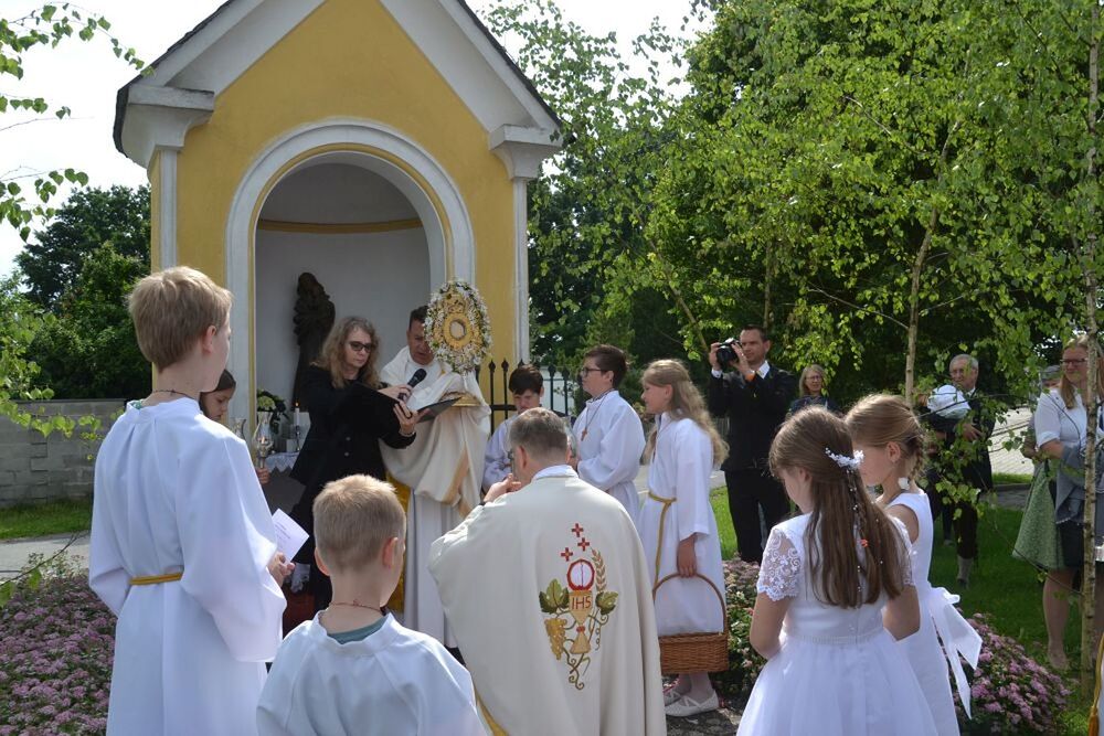 In schöner Gemeinschaft feierten die Pfarren Premstätten und Wundschuh das Fronleichnamsfest heuer in Wundschuh. Nach dem festlichen Gottesdienst mit Pfarrer Claudiu Budau und Diakon Wolfgang Garber in der Pfarrkirche Wundschuh bewegte sich die Prozession, musikalisch begleitet von der Blasmusik, durch den Ort zu den Altären, wo Kinder und Erwachsene Gott singend und betend Lob, Preis, Dank und Bitten darbrachten. Mit der letzten Station in der Kirche fand die Fronleichnamsprozession ihren feierlichen Abschluss.