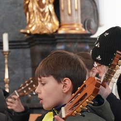 Gitarrenklänge erfüllten am Sonntag, dem 3. Dezember, den Kirchenraum bei der heiligen Messe, die Vikar Norbert Glaser und Diakon Franz Habith mit der Pfarrgemeinde feierten.