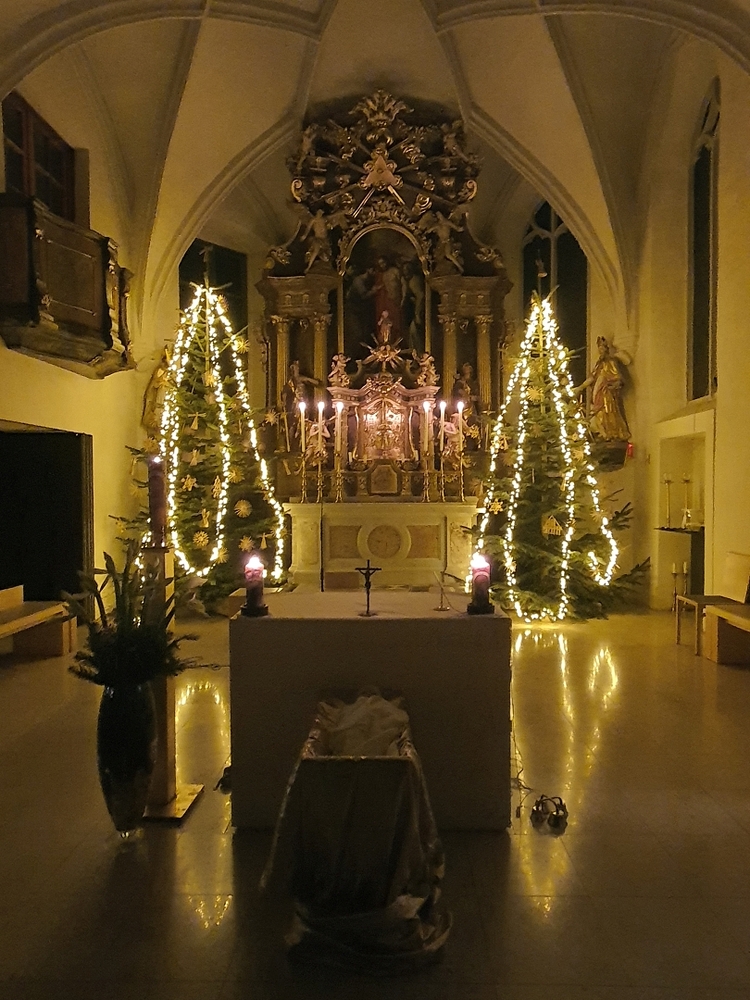 Vikar Norbert Glaser feierte mit vielen Gläubigen die Christmette und wurde von Diakon Michi Zepf unterstützt. Die Freude über die Geburt des Jesukindes, unseres Heilands, stand im Mittelpunkt und fand auch in den vielen schönen Weihnachtsliedern, die gemeinsam gesungen wurden, ihren Ausdruck. Die Friedensbotschaft der Heiligen Nacht möge Kreise ziehen und sich auf unserer Erde ausbreiten!