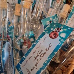 Als Zeichen des Gesegnet-Seins bekamen alle Taufkinder, die beim Gottesdienst mitfeierten, ein Weihwasserfläschchen geschenkt.
