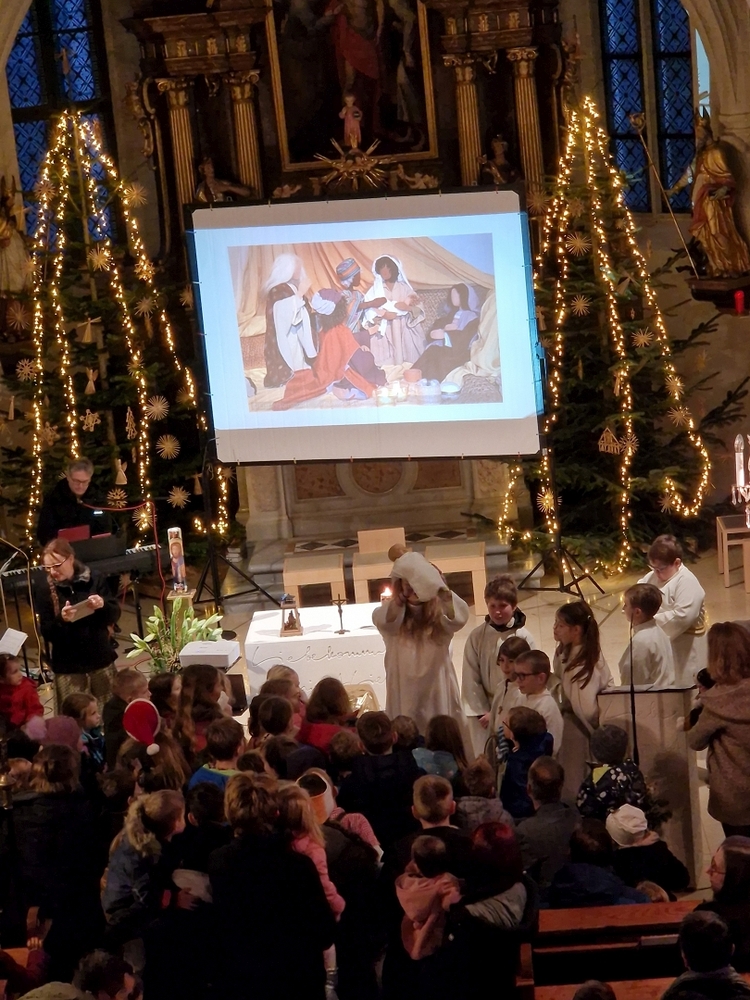 Liebevoll gestaltet war auch heuer wieder die Kinderkrippenfeier, die Pastoralreferentin Anja Asel mit vielen Kindern und Erwachsenen am Nachmittag des Heiligen Abends in unserer Pfarrkirche feierte. Schon vor der Feier erklangen Weihnachtslieder und stimmten alle auf das weihnachtliche Geschehen ein. Ein herzliches Danke an Anja und die mitwirkenden Minis sowie an unsere tolle Band für die stimmungsvolle Musik, die alle sehr begeisterte!