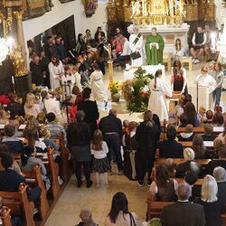 Bei strahlendem Wetter zogen 40 Kinder mit ihren Taufpatinnen und Taufpaten in die Kirche ein.