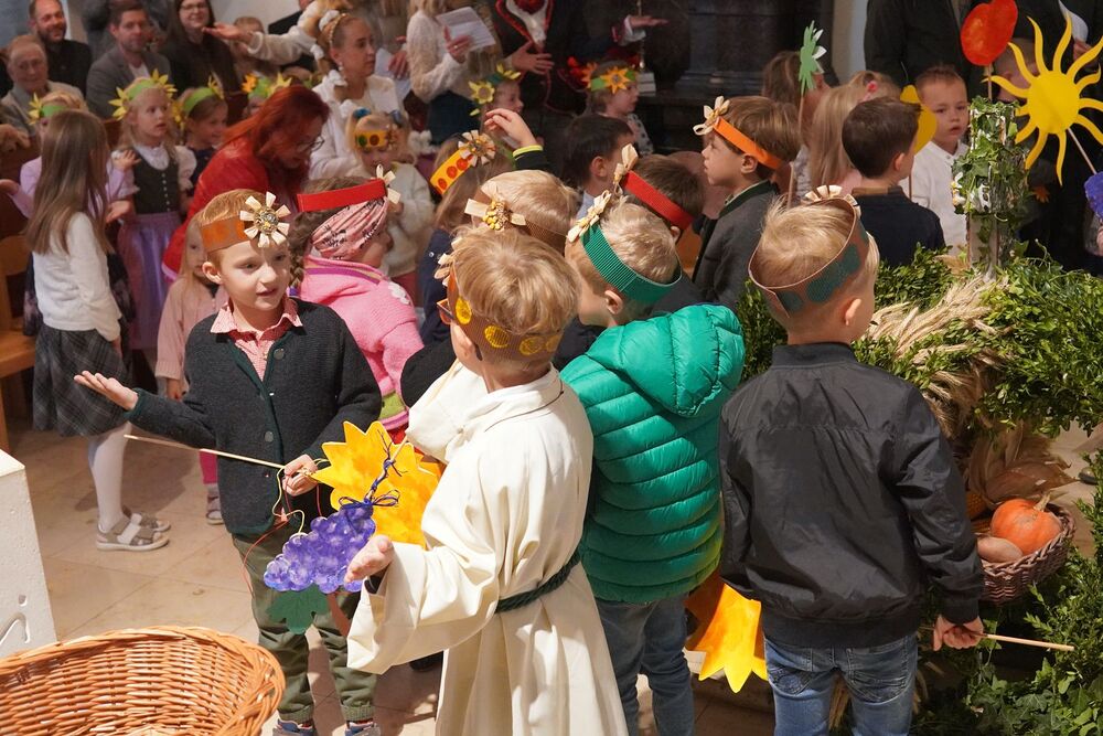 Ein herzliches Danke allen, die so schön mitgestaltet und mitgefeiert haben: Dies waren die Kindergartenkinder (Erntedank Tanz), die Minis und MS-Schüler*innen (Zeichenhandlung mit Erntegaben), die Landjugend (Erntekrone), die Musikgruppe (begeisternde Musik) und viele mehr.