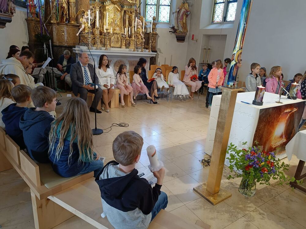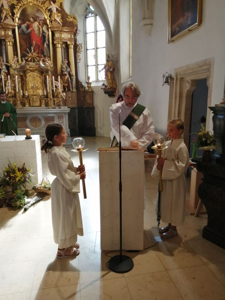 Ein großer Dank gilt allen, die dieses Fest den Kindern und ihren Familien ermöglicht haben: unserem Vikar Gerhard Hatzmann für die herzliche Feier, den Minis und der Mesnerin, dem Pfarrgemeinderat für das Richten des Feierplatzes im Freien, der Blasmusik, die alle begrüßte, den Musikerinnen und Musikern, die den Gottesdienst festlich umrahmten, und dem Sozialkreis für die Bewirtung nach dem Gottesdienst, sowie allen anderen, die still und unauffällig im Hintergrund zum Gelingen beigetragen haben.