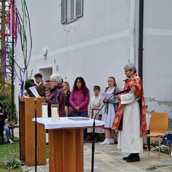 So wurde Erntedank zu einem bunten Fest, das mit der Agape auf dem Kirchplatz – danke, lieber Sozialkreis - einen schönen Ausklang fand. Unter spontan aufgestellten Zelten trotzte man dem Regen und genoss das Zusammenstehen noch eine gute Weile.