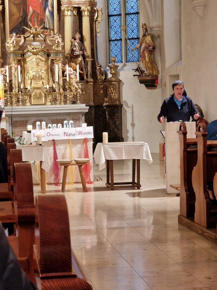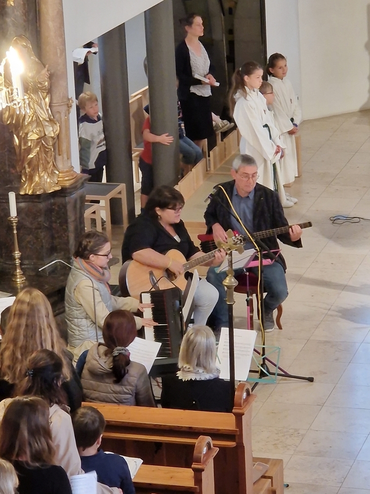 Das harmonische Miteinander spürte man besonders beim Friedensgruß, beim Glaubensbekenntnis, beim Segnen, beim Vater-Unser-Kreis und beim Singen der schönen Lieder. Ein herzliches Danke an Johannes Chum und Ursi Schrei für die einfühlsame musikalische Begleitung!