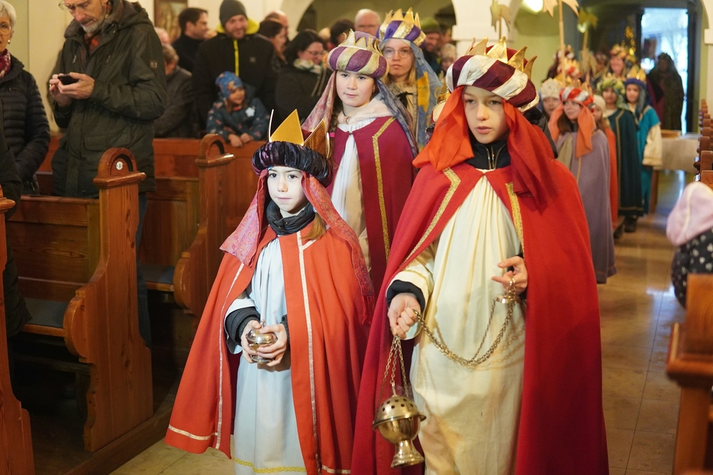 Noch einmal schlüpften kleine und große Leute in königliche Gewänder, um beim Gottesdienst am „Dreikönigstag“ als Königinnen und Könige aufzutreten.