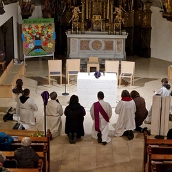 Die Ängste und Sorgen vieler Menschen unserer Zeit wurden in die Feier aufgenommen und in den großen Fürbitten vor Gott gebracht. Er möge allen Bedrängten beistehen, Kriege, Not und Elend beenden!